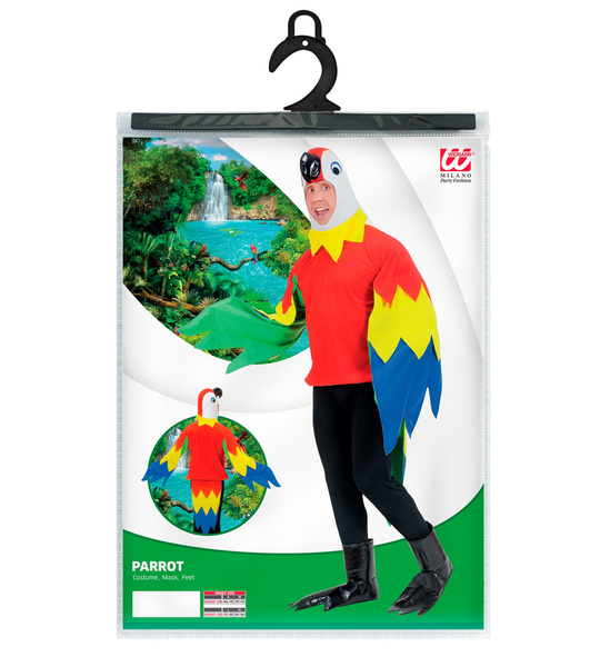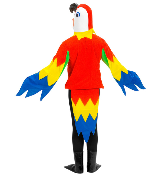 Czerwona bluza z wszytym ogonem i kolorowymi skrzydłami,