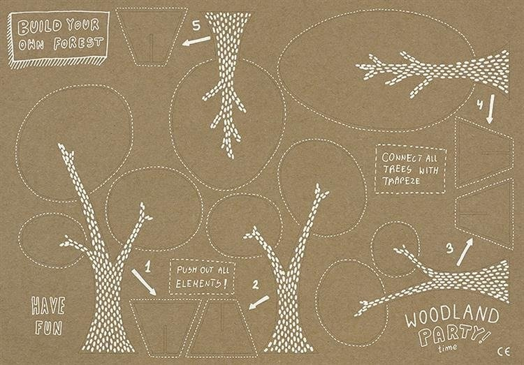 Zestaw kreatywny Woodland, opakowanie zawiera dwie plansze i 12 figurek do układania.