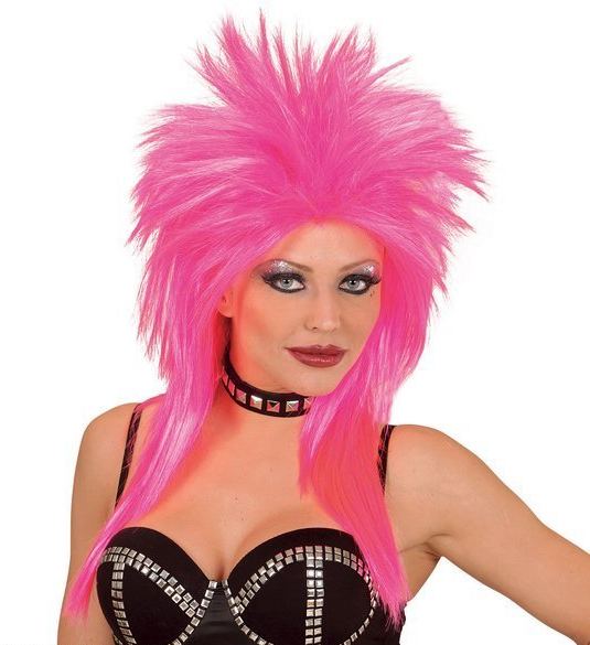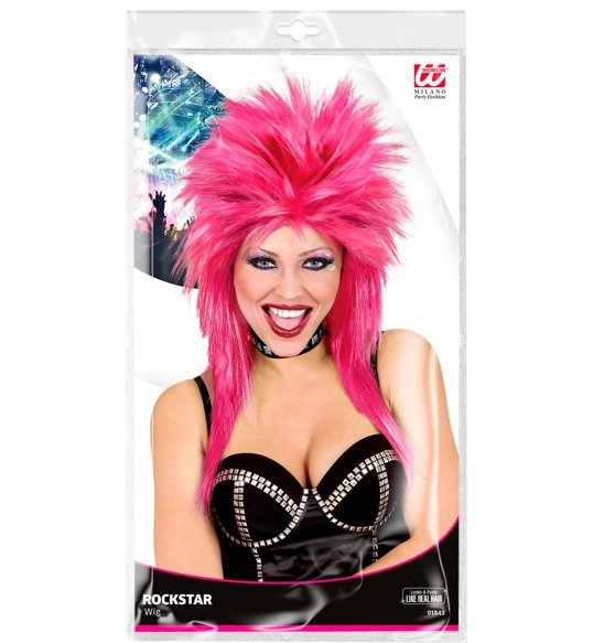 Peruka w kolorze: różowym. Włosy proste, z nastroszoną grzywą. Peruka mocowana na elastycznej siatce. Włosy są błyszczące, wyglądają naturalnie.