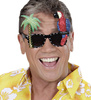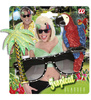 Okulary Summer Time, akcesoria, gadżety, okulary w kolorze czarnym, z jednej strony dołączona jest kolorowa papuga a z drugiem zielona palma, okulary wykonane z plastiku