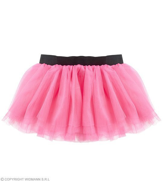 Spódniczka wykonana z różowego tiulu. Kilkuwarstwowa, prześwitująca. W pasie ma wszyta czarną gumę. Spódniczka bardzo elastyczna.