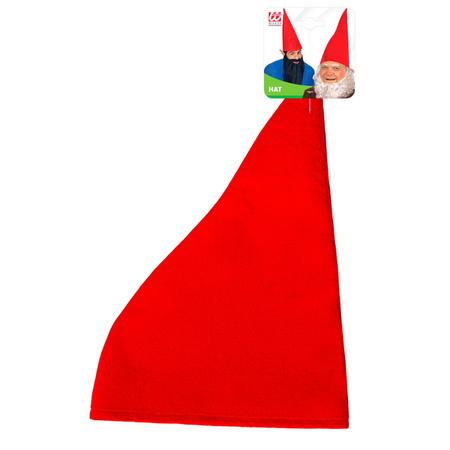 Czapka gnoma w kolorze czerwonym. Wykonana z filcu. Materiał bardzo plastyczny, czubek czapki po nałożeniu na głowę sterczy.