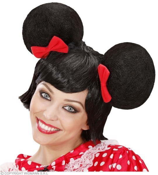We włosy wklejone uszy myszy oraz czerwone kokardki.