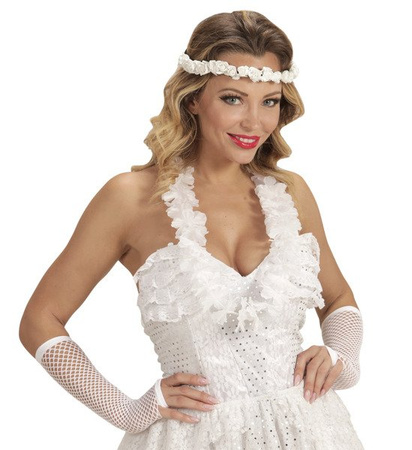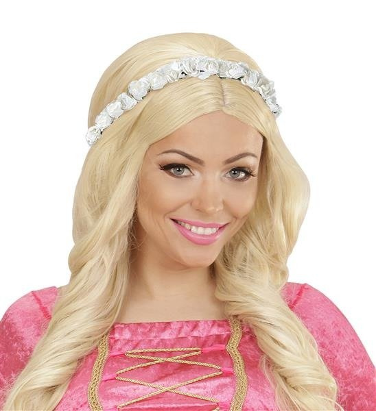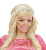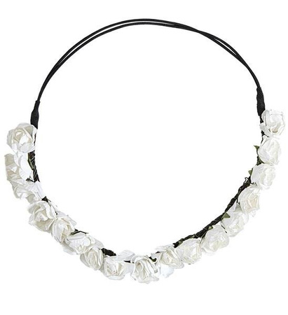 Opaska wykonana z brązowej plecionki z doczepianymi kwiatkami.
