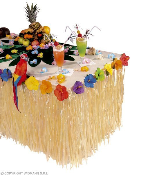Hawajska dekoracja wykonana z foliowego materiału imitującego rafię.