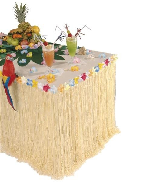 Hawajska dekoracja wykonana z foliowego materiału imitującego rafię.