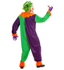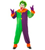 Kombinezon z długim rękawem z pomponami imitującymi guziki. Wykończony oryginalnym kołnierzem. Zapinany z tyłu na rzepy. Połączone ze sobą trzy koloru materiału: zielonego, fioletowego i pomarańczowego. Rękawki i nogawki mają wszytą gumkę. Do zestawu dołączona jest maska, wykonana z gumy-lateksu. Jest to głowa jokera z białą twarzą. Mocowana na gumce.