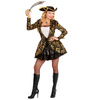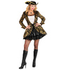 Frak z długim rękawem. Zdobionym pięknym złotym wzorem, guzikami oraz czarną koronką.