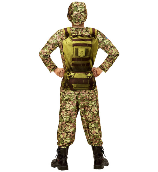 Kask wykonany z pianki obszytej materiałem w kolorystyce moro.