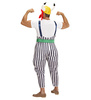 Żółty hełm z białymi rogami. Do hełmu doczepione są czerwone warkocze oraz wąsy. Spodnie na granatowych szelkach w biało granatowe paski. Zielony pasek wykonany z pianki obszytej materiałem ze złotą klamrą. Zapinany z tyłu na rzep.