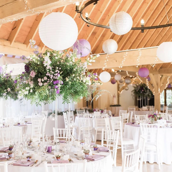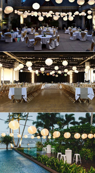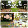 Ogrodowy lampion papierowy w kolorze białym o średnicy 20 centymetrów.