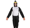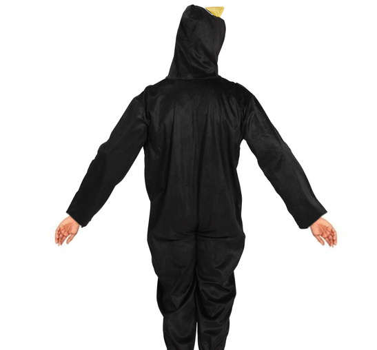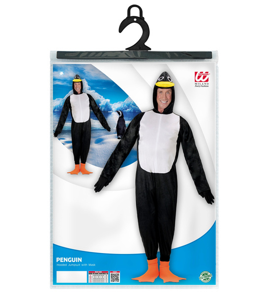 Strój jest kombinezonem z kapturem w kształcie pingwina.