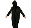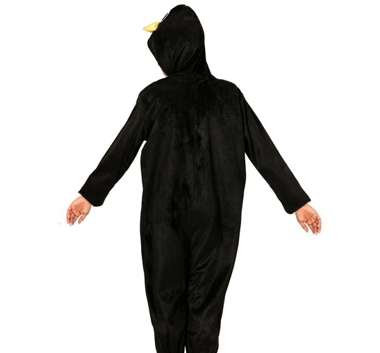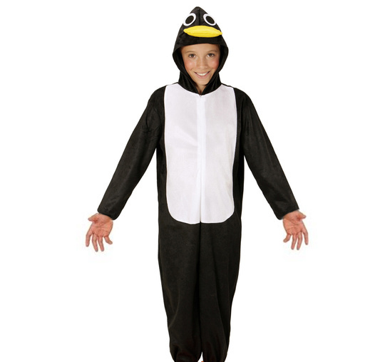 Strój jest kombinezonem z kapturem w kształcie pingwina.