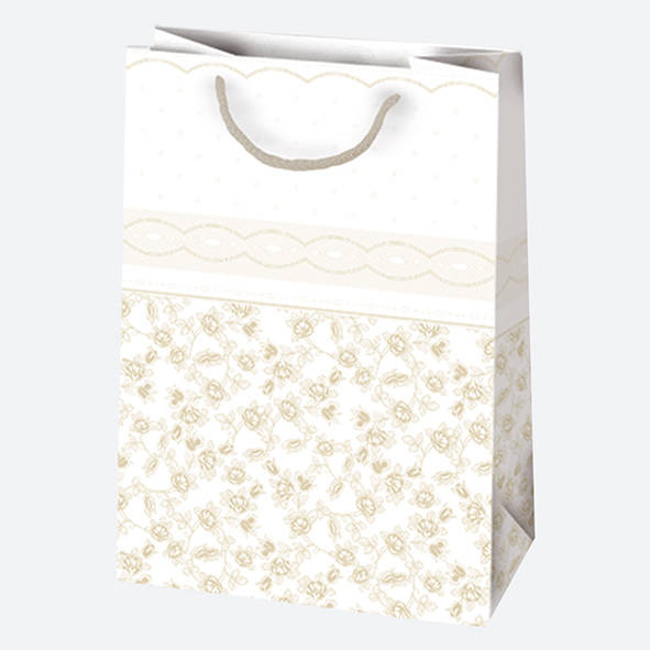 TORBA NA PREZENTY ZŁOTE KWIATY ZDOBIENIE 23X32X11CM