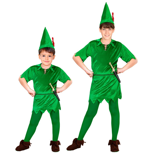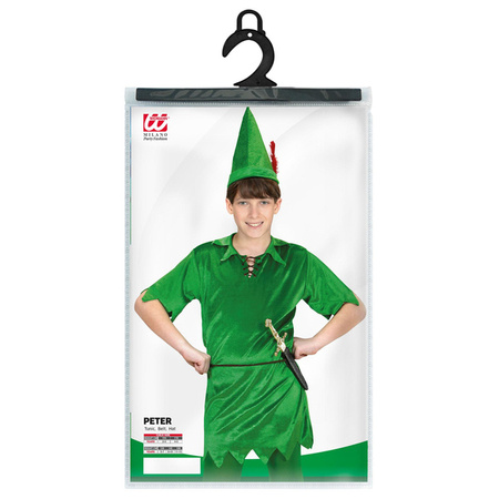 Strój w kolorze zielonym, z czapką i czerwonym piórkiem.
