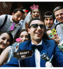 Karteczki na patyku Wesele. 20 elementów w opakowaniu m.in. melonik, cylinder, wąsy, fajka, usta, okulary.