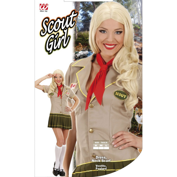 Strój Harcerka, Harcerki, Harcerski, Karnawał, zestaw zawiera: sukienkę i czerwoną chustę, kolor beżowo-zielony, rozmiar M