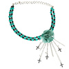 Naszyjnik gotycki choker z zielonym kwiatem. Kolor: srebrny, zielony.