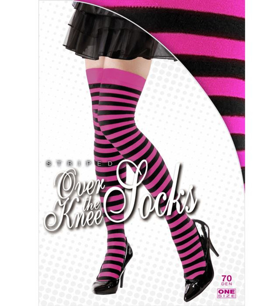 Pończochy w Różowo-Czarne Paski, Akcesoria, kolor różowo-czarny, pończochy w paski, wykonane z nylonu, grubość 70 DEN, rozmiar XL