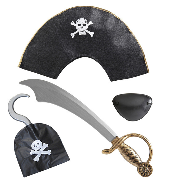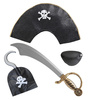 Zestaw zawiera: kapelusz, hak, opaskę na oko, miecz. Rozmiar dziecięcy.