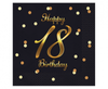 Czarne z nadrukiem złotych kropek i napisem "Happy 18 Birthday"