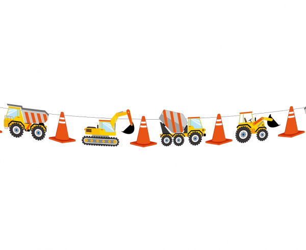 Girlanda z motywem maszyn budowlanych.