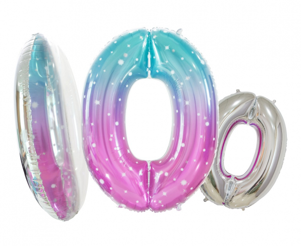 • Z jednej strony nadruk ombre niebiesko-różowy, tył balonu - srebrny.