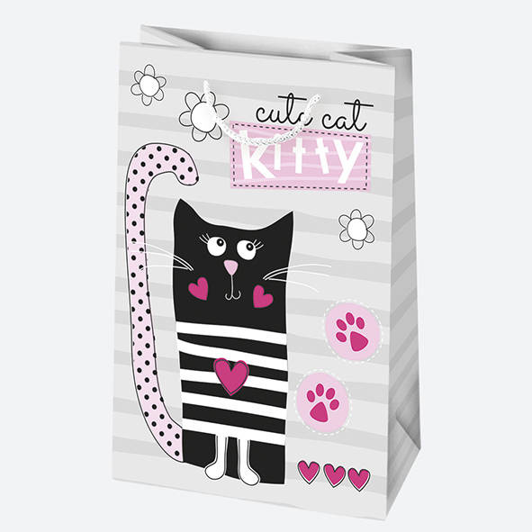 Z motywem dziecięcym - śmieszny kotek. Napis: "Cute cat Kitty".