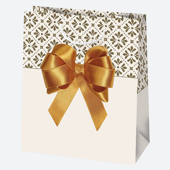 Wzór: duża, złota kokarda na środku, eleganckie zdobienie na górze.