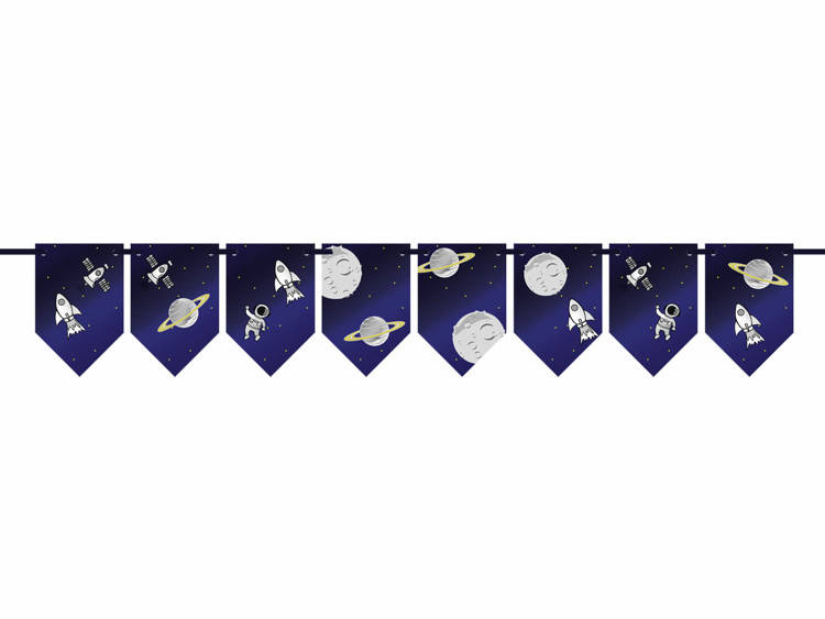 Zestaw zawiera 8 flag papierowych i ok. 3 m tasiemki.