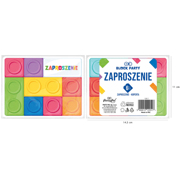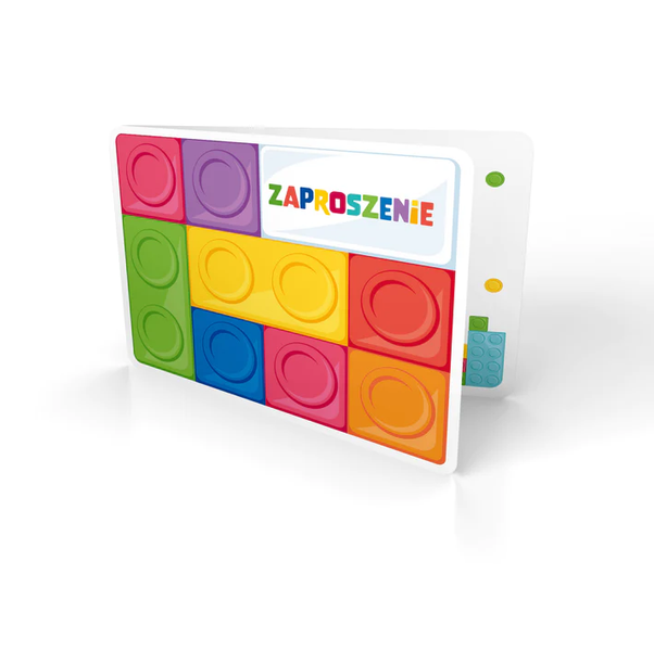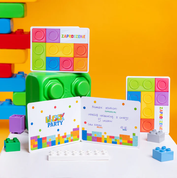 • Zaproszenia urodzinowe z kopertą Klocki.
