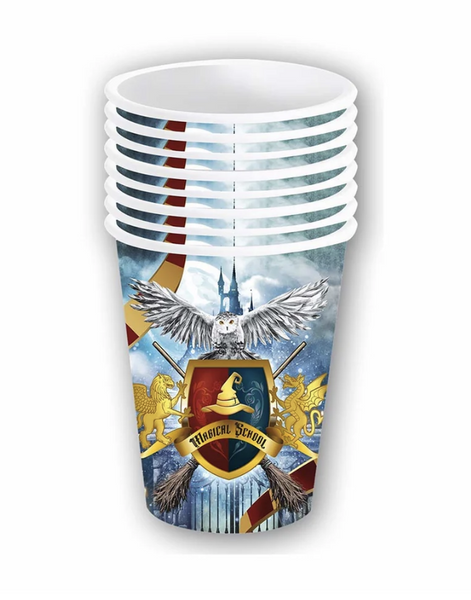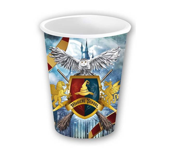Nadruk przedstawia czarodziejski świat oraz herb z napisem "Magical School"