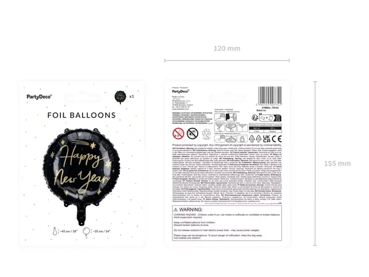Balon foliowy Happy New Year w kolorze czarnym ze złotym nadrukiem.