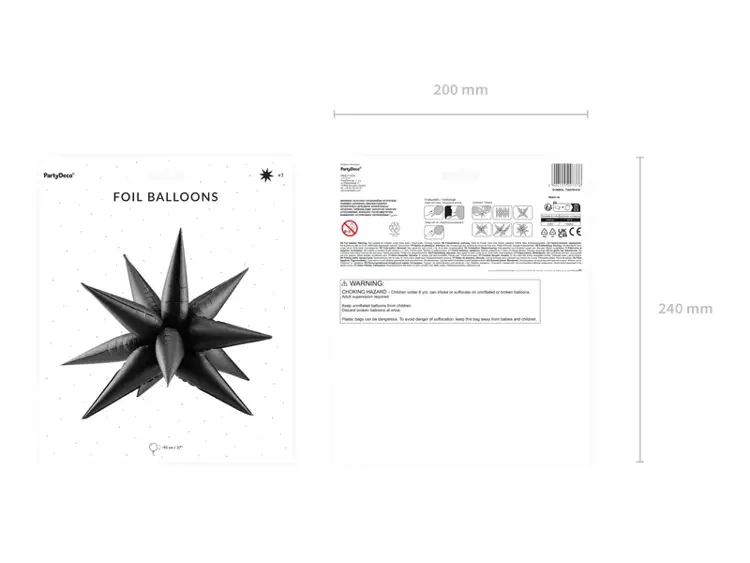 Matowy, trójwymiarowy balon foliowy w kształcie gwiazdy.