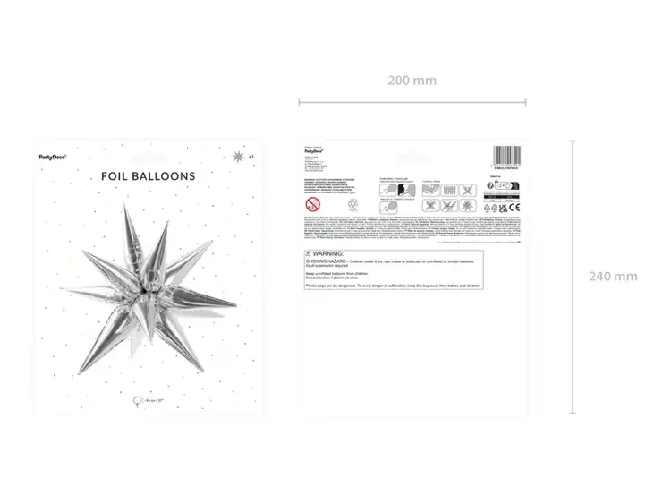Błyszczący, trójwymiarowy balon foliowy w kształcie gwiazdy.