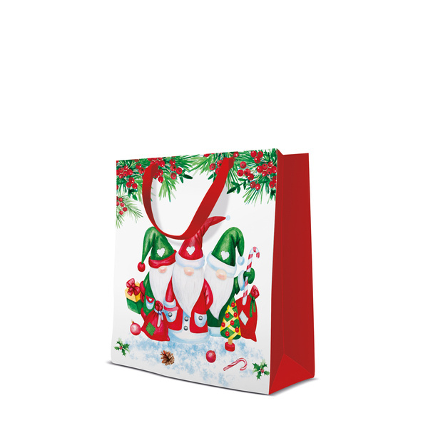 • Torebka prezentowa z wizerunkiem trzech świątecznych skrzatów.