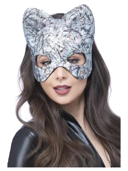 • Maska piankowa przedstawiająca kota zakrywająca połowę twarzy.
