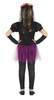 Czarna sukienka zakończona fioletowymi paskami z tiulu.