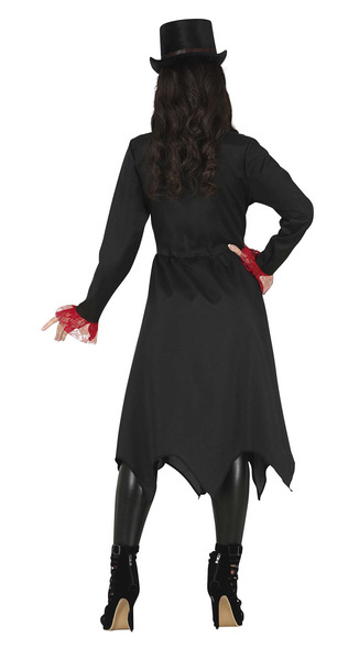 Płaszcz zakończony jest trójkątnym cięciem.