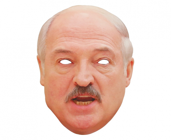 Maska papierowa przedstawiająca Alaksandra Łukaszenkę.