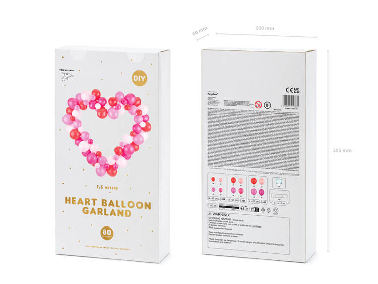 Różowa Girlanda Balonowa w Kształcie Serca.