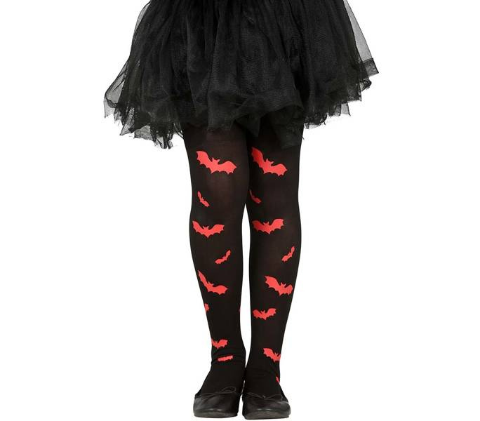 Na nogawkach jest wzór nietoperzy w kolorze czerwonym.