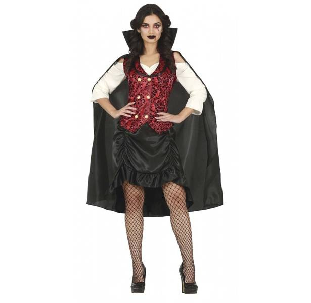 Kamizelka w kolorze karmazynu z czarnymi zdobieniami.
