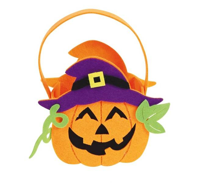 Kolorowy koszyk na słodycze w kształcie dyni.