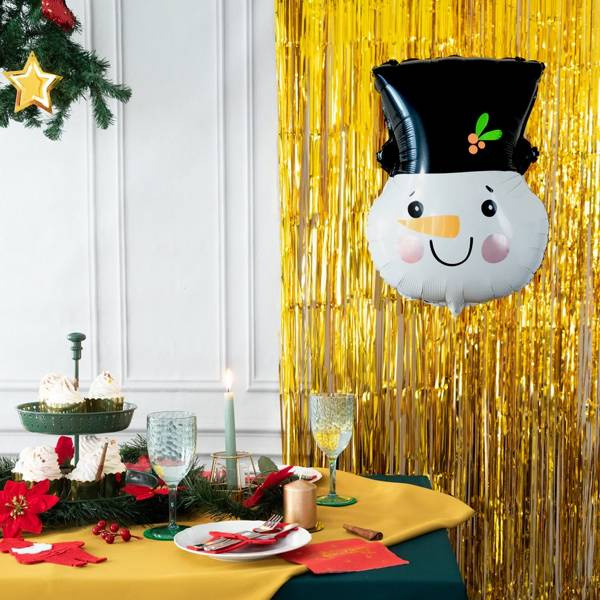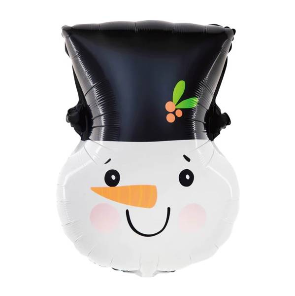 Balon posiada nadruk buźki bałwana z czarnym kapeluszem.