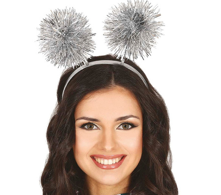 Opaska z srebrnymi pomponami wykonanymi z lamety.