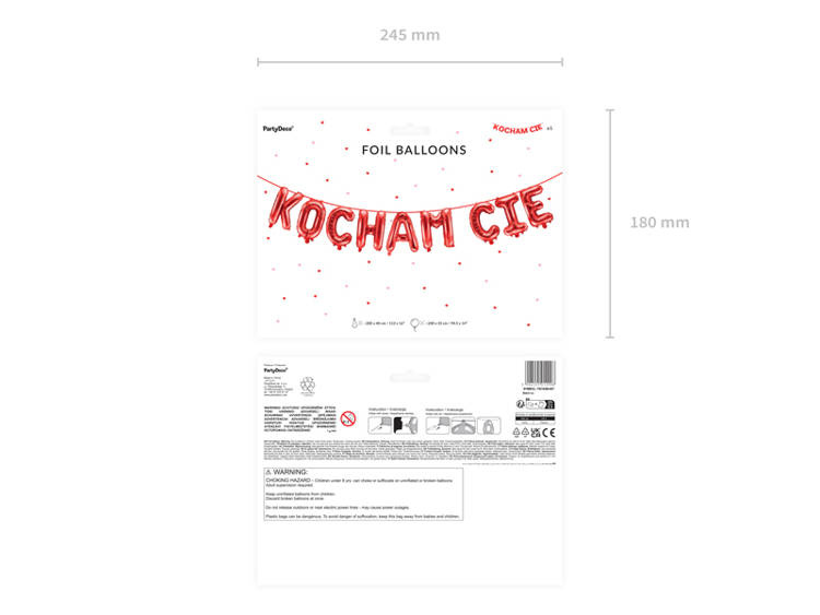 Zestaw balonów foliowych tworzących napis Kocham Cię.