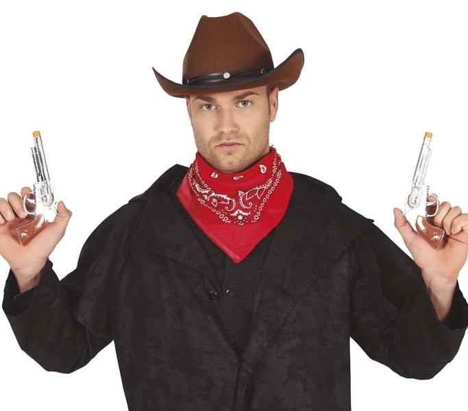 Rewolwer kowboja w kolorze srebrnym z pomarańczowym zakończeniem.