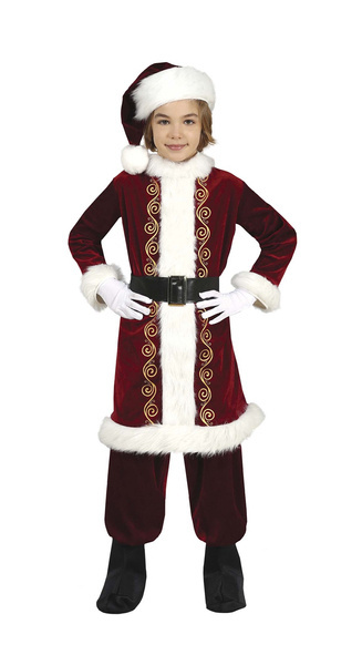 • Strój w kolorze bordowym, obszyty białym futerkiem.