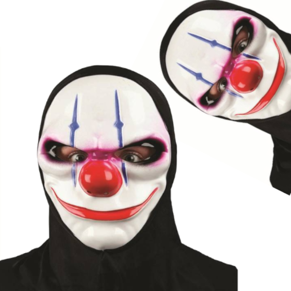 Maska upiornego klauna wykonana z tworzywa sztucznego.